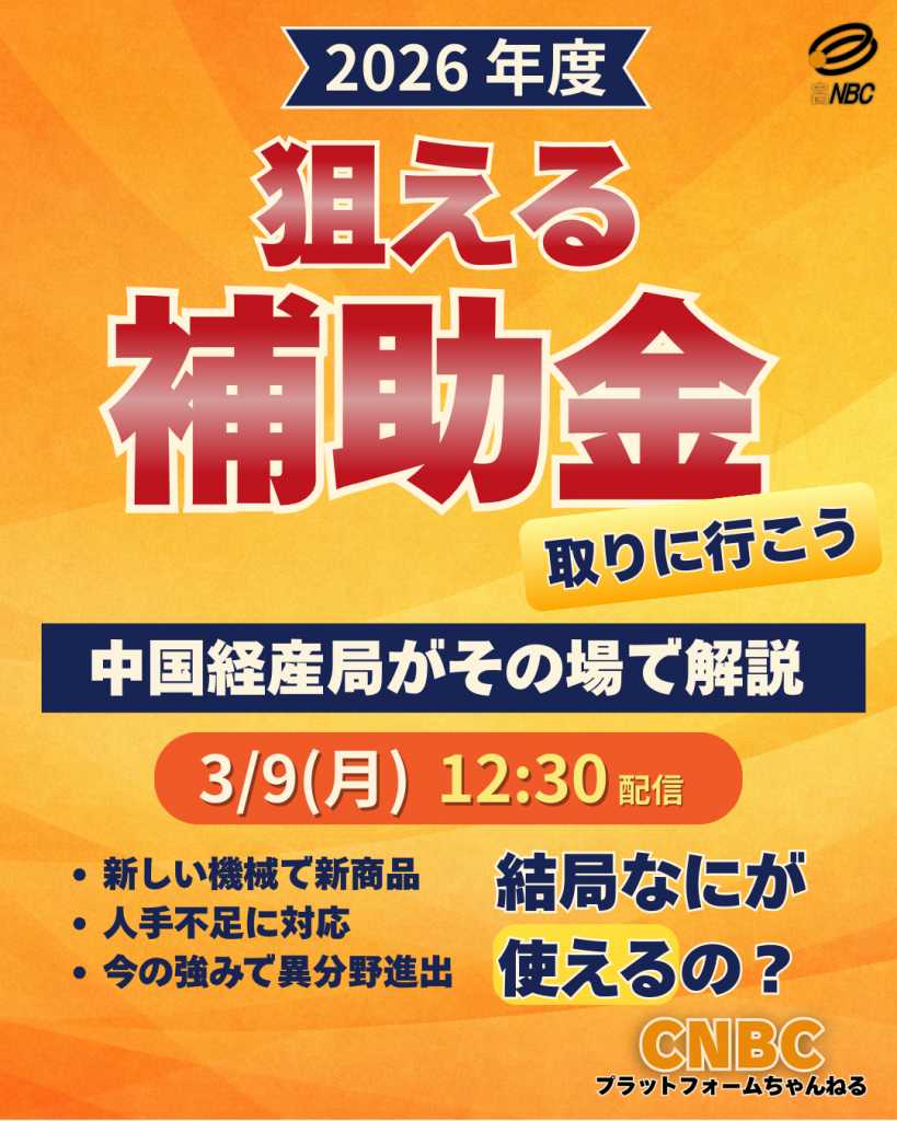 中国地域のニュービジネスの育成と振興を図ることを目的として、中国地域において独創的かつ市場性のあるニュービジネスを展開している企業(LLP、NPO等の団体・個人事業を含む、以降同様)を表彰する。
